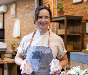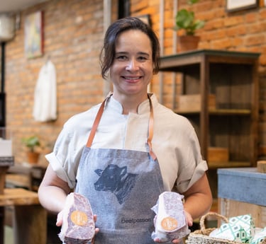 Paulistana e graduada em Direito pela PUC-SP, construiu sua carreira inicial como advogada, mas havia um desejo latente que não podia ignorar: o amor pela culinária. Em 2017, decidiu fazer a transição de carreira e, no ano seguinte, mergulhou de vez no universo gastronômico.